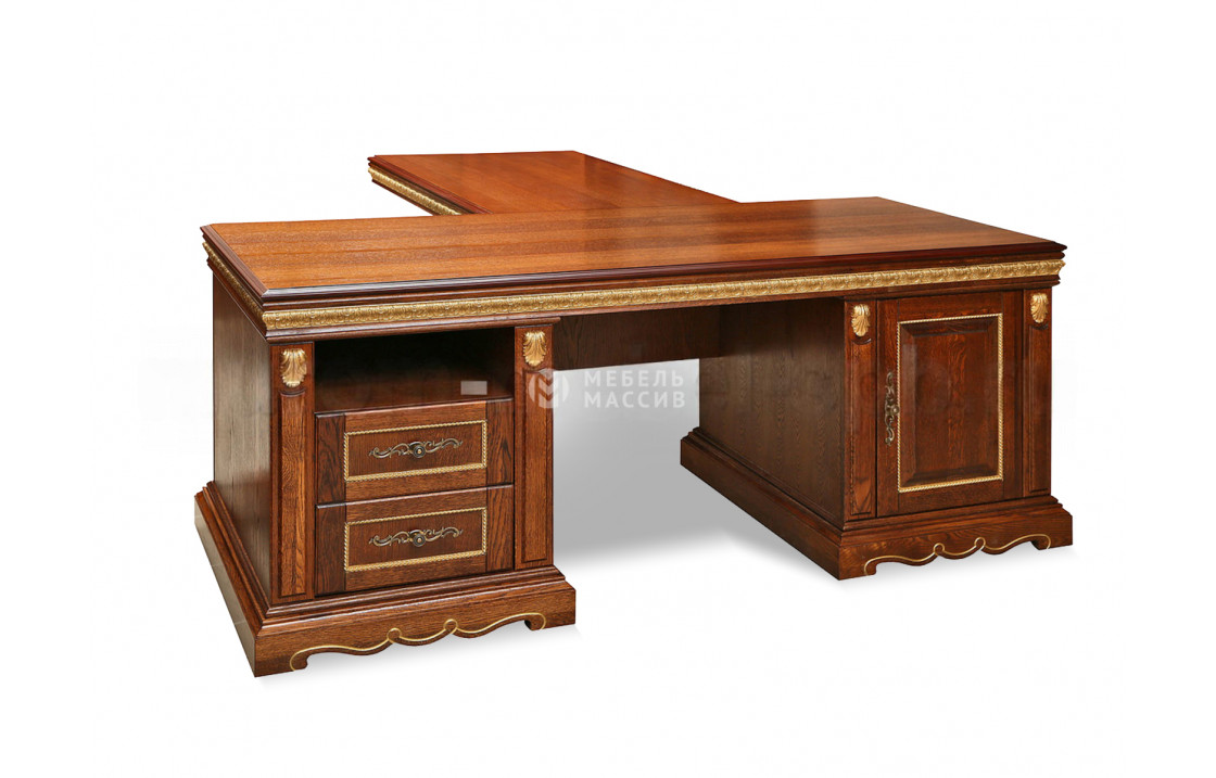 Стол руководителя из серии Милано станет важным атрибутом кабинета начальника, также он подойдет для оформления домашнего рабочего места. Модель имеет Т-образную форму и массивную столешницу, за которой будет комфортно чувствовать себя как сам босс, но и его коллеги либо клиенты. Функциональности столу добавляют боковые тумбы, одна из которых имеет отделение с распашной дверцей, а вторая – открытую нишу и два выдвижных ящика. Изготовлена модель из цельного массива дерева, фасады украшены резными элементами, придающими мебели премиальности. Доставка по Белгороду и Белгородской области.| Размер | Цена | |